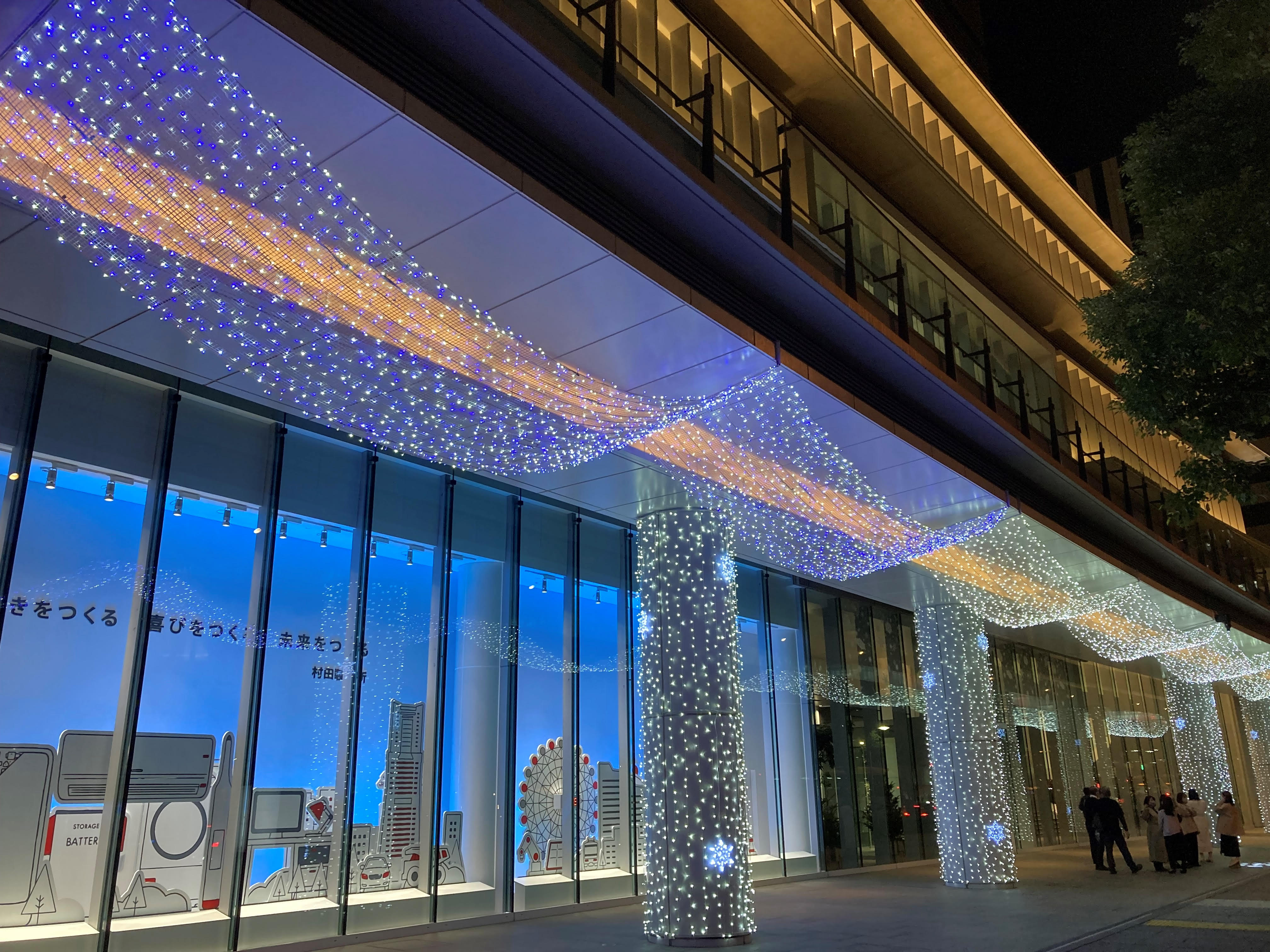 村田製作所みなとみらいイノベーションセンターでは、11/11(金)から、16:00~22:00、1F玄関にクリスマスツリーを設置、みなとみらい大通り沿いにイルミネーションを点灯します。