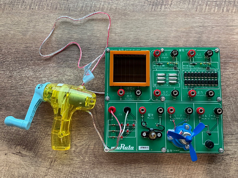ムラタ製の学習キットを使って、電気エネルギーや電子部品の役割について学びながら、電気が環境に与える影響について考えます。ムラタ社員がサポーターとして各グループの指導や補助にあたります。